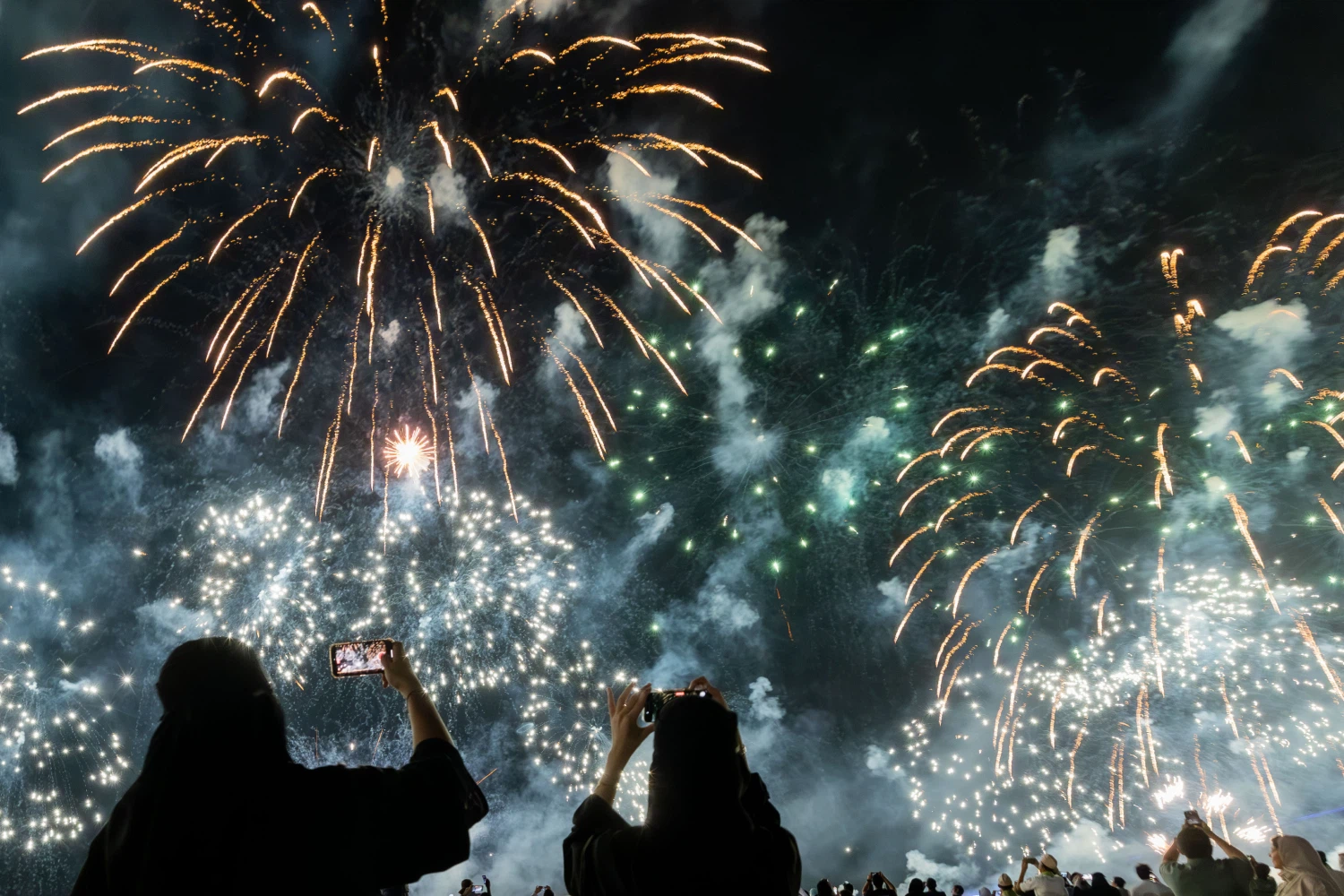 يحل الليل وتُشعل بوشكات دومينيك الظلام! ألعاب نارية متوهجة، دخان نيون، وصفارة سكة حديدية مدوية تضيء السماء—ثم المفاجأة السعودية: طائرتان بوشكات في تآزر ناري، يضاعفان العرض بعاطفة مصنوعة يدويًا ودقة كهربائية!