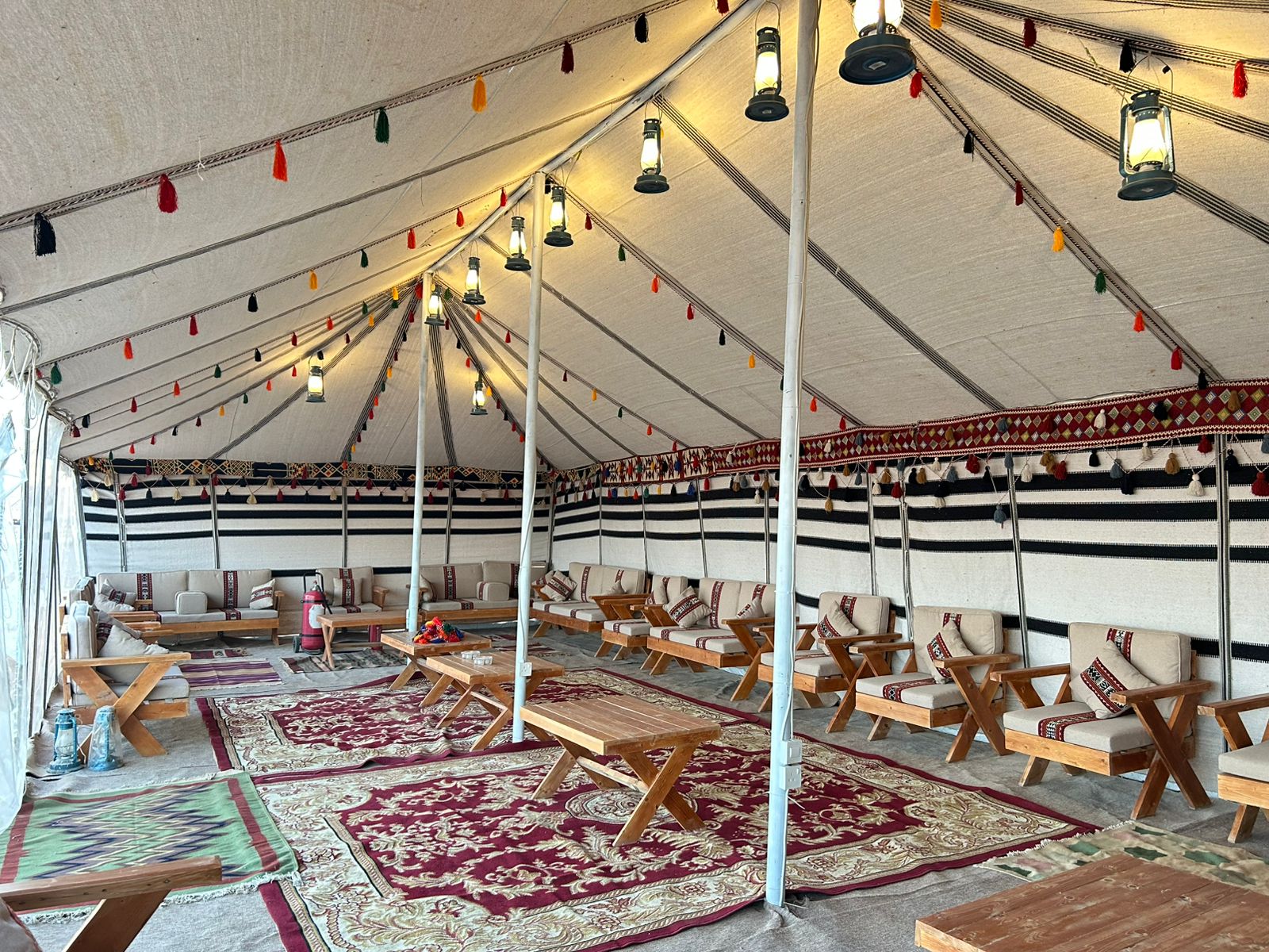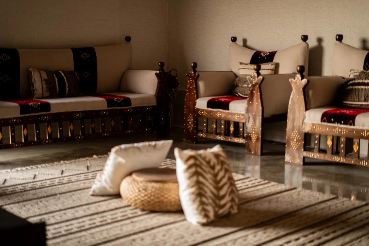 Two luxurious camps, each accommodating up to 50 guests and featuring 10 luxurious rooms. Each room includes a luxurious bathroom with a shower, a bed, and private indoor and outdoor seating areas.