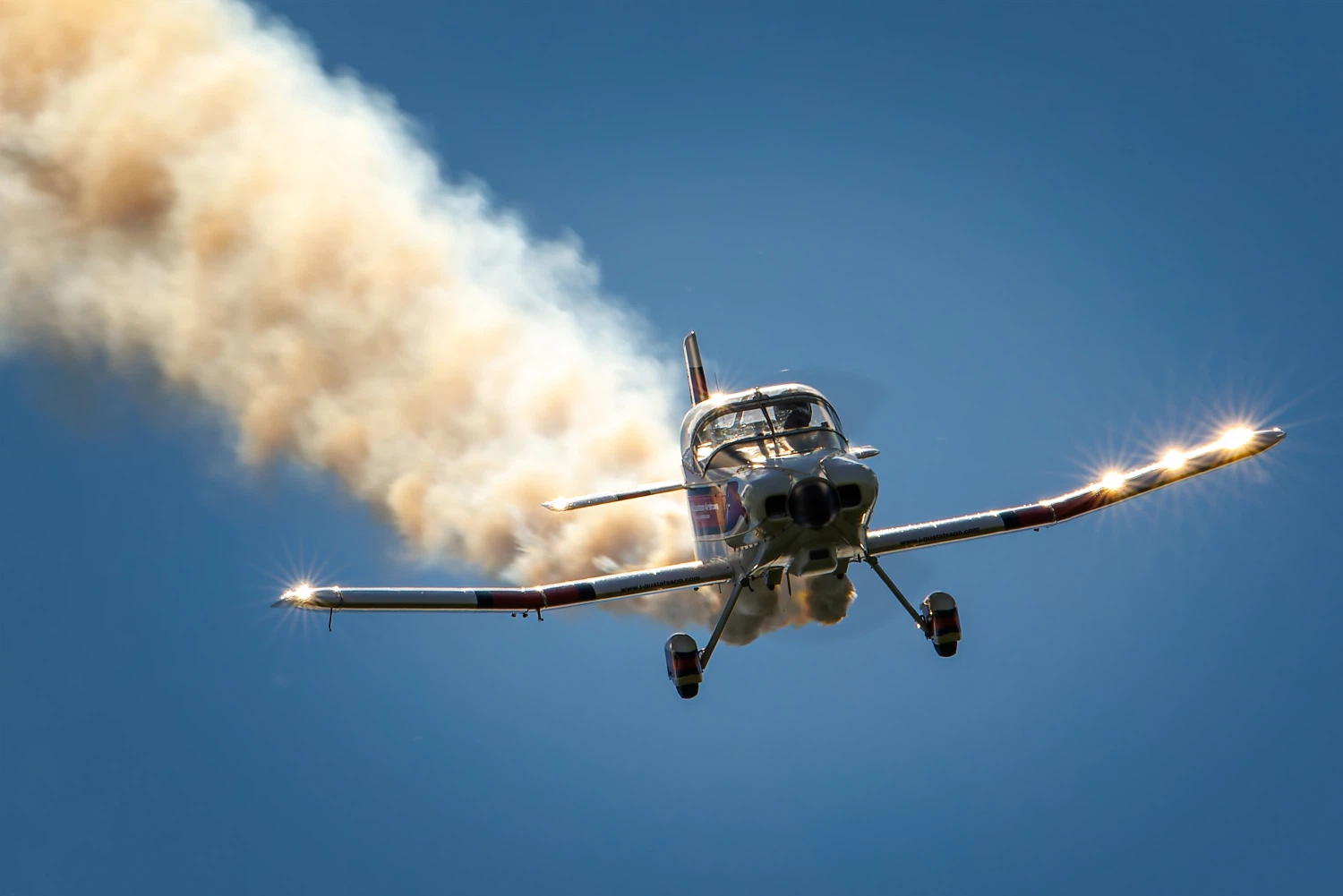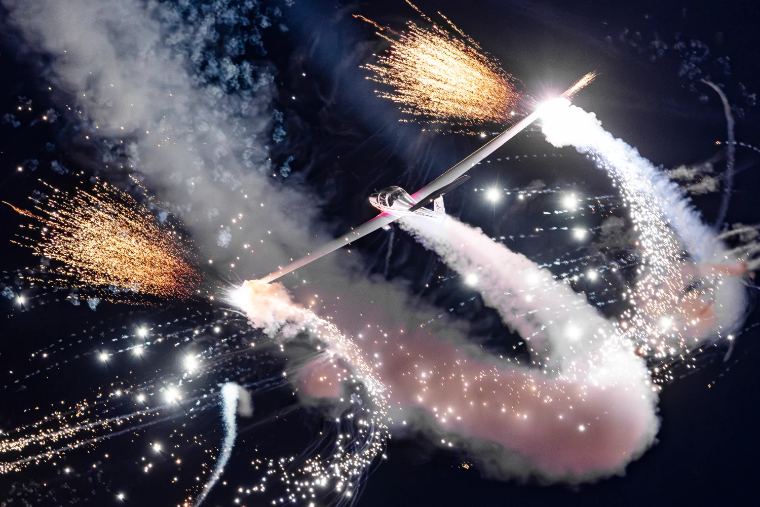 Witness sky art with Airborne Pyrotechnics! By day, the GROB G109B paints colorful smoke trails in perfect harmony. By night, its wings erupt with pyrotechnics, fusing flight and fire into unforgettable magic. Led by veteran Tim Dews, this is aviation as art!