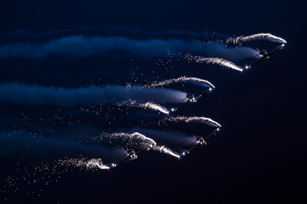 By day, vibrant smoke electrifies the sky. By night, Phoenix Paramotor Display Team transforms it into a magical stage of music, lights, and pyrotechnics. Led by six-time world champion Paweł “Lojak” Kozarzewski, Phoenix delivers innovation, thrill, and unforgettable sky art!